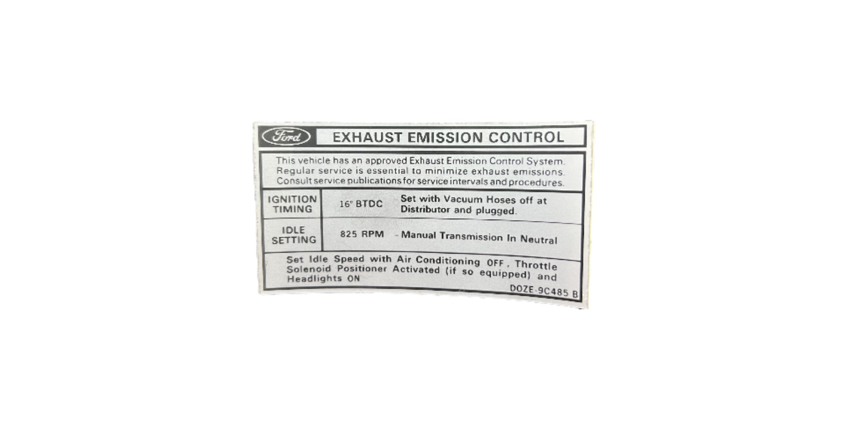 1970 Boss 302 Emissions MT Mid-Year D0ZE-9C485-B